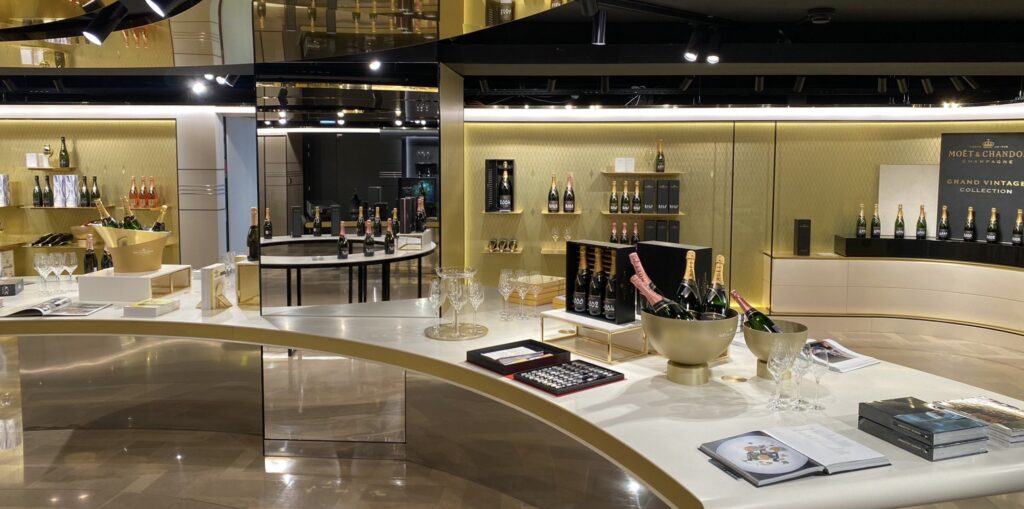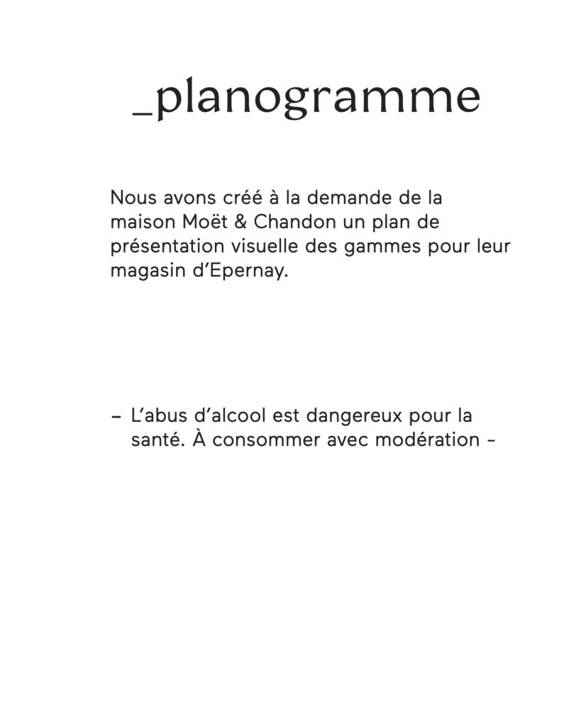 Plan de présentation visuelle des gammes Moët & Chandon pour leur magasin d'Epernay